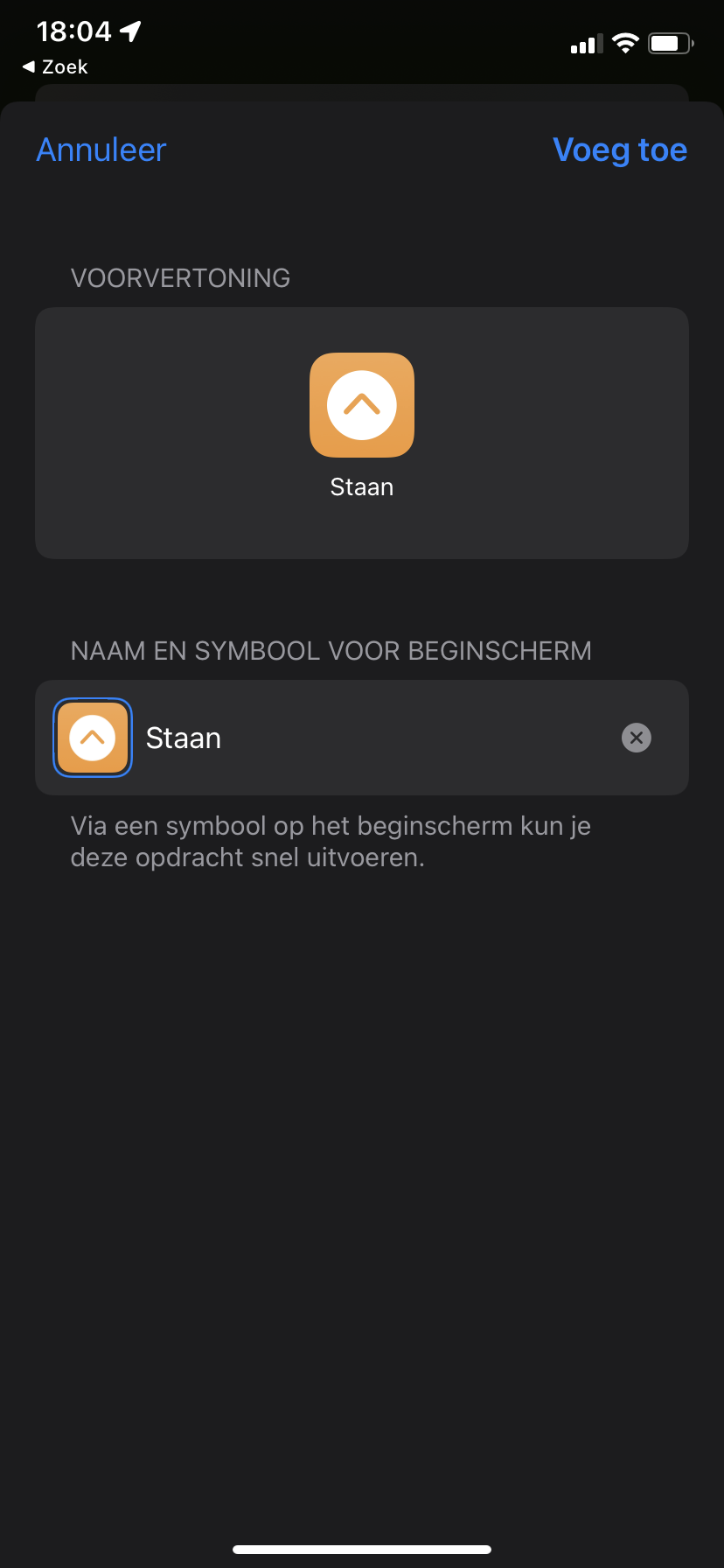 Maak een opdracht voor zowel stahoogte als zithoogte. Nu heb je 2 iconen op je beginscherm. Eén voor stahoogte en één voor zithoogte. Leuk! Maar dat kan nog leuker!